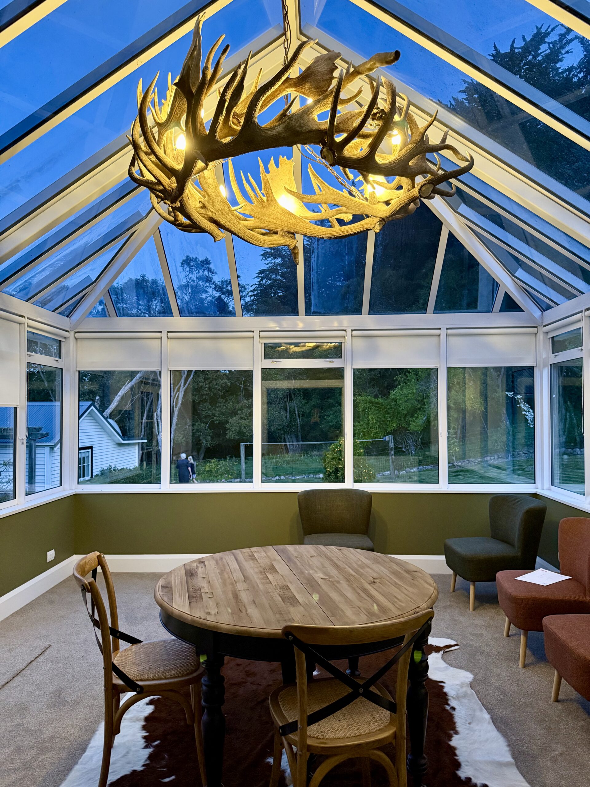 At the end of the day sit back, feel the warmth of the open fires while indulging in pre dinner canapés and cocktails. Enjoy fellowship, share stories and fill the room with laughter while sitting around the large dining room table awaiting a culinary journey paired with New Zealand wine and local beer. The organic vegetable bed, green house and orchard provide fresh produce year round.